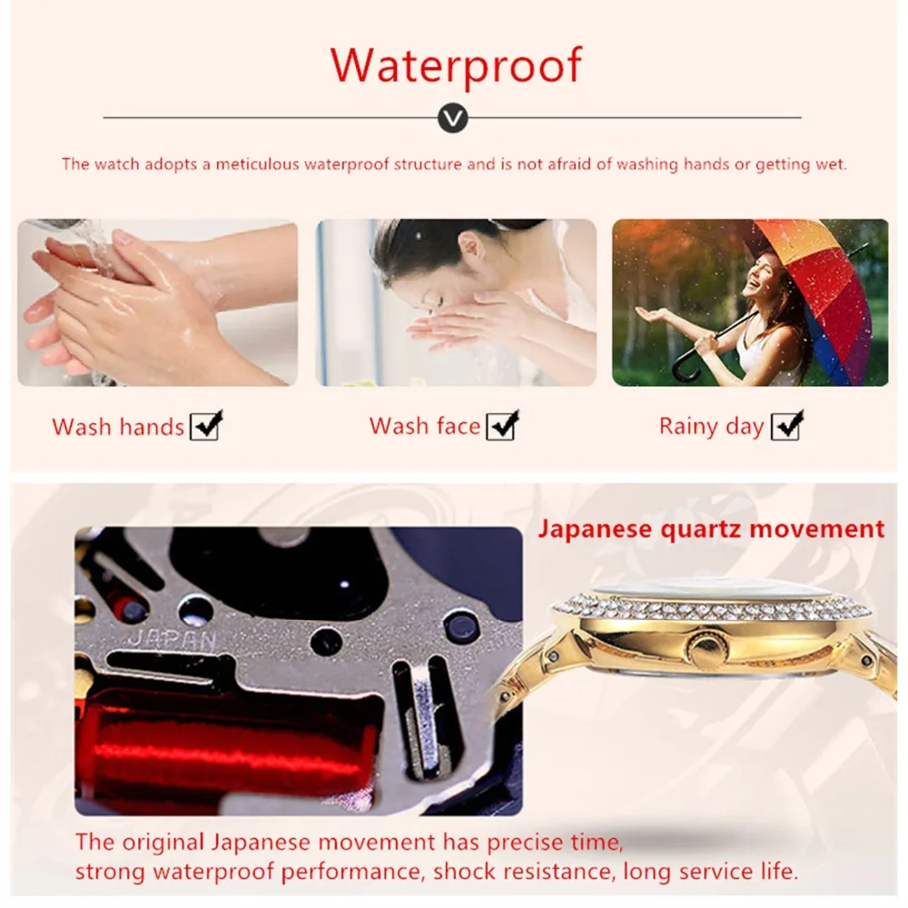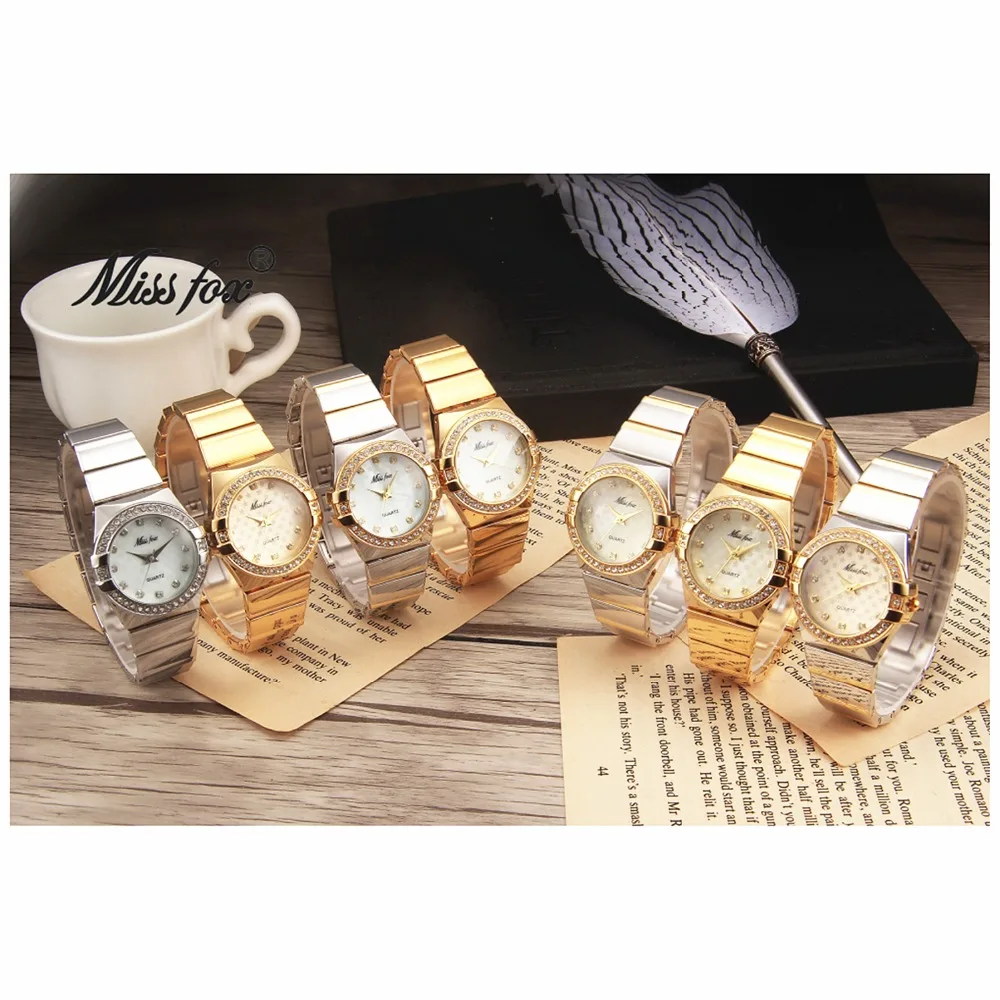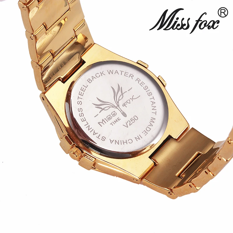 Special For You MISS FOX Women's Gold Watch Steel Chain Luxury Quartz Watch Fashion Casual Clock Star Diamond Dial